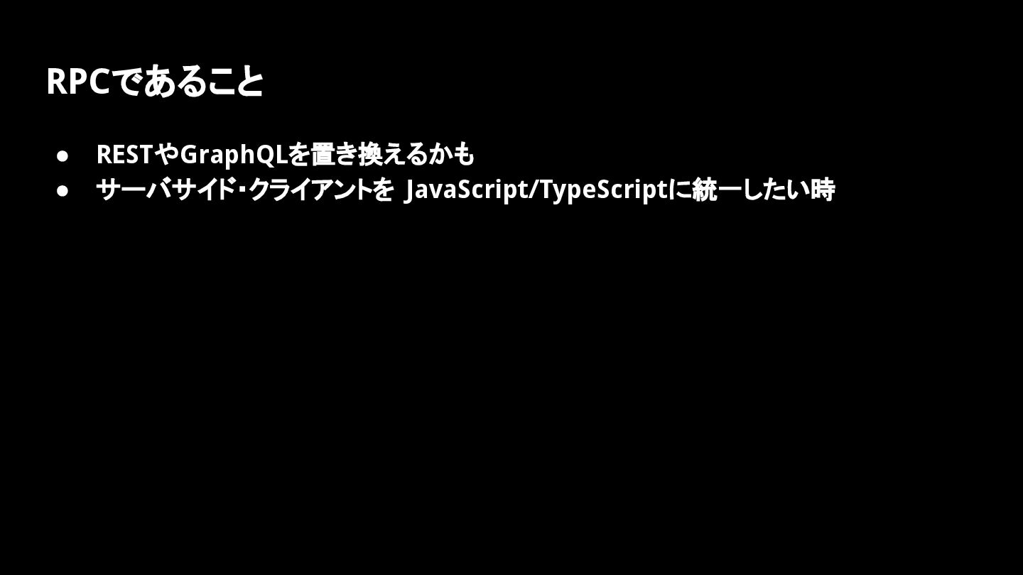 RPCであること • RESTやGraphQLを置き換えるかも • サーバサイド・クライアントを JavaScript/TypeScriptに統一したい時