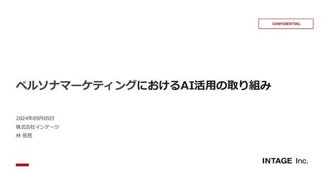 ペルソナマーケティングにおけるAI活用の取り組み 2024年09月05日 株式会社インテージ 林 佑亮 CONFIDENTIAL