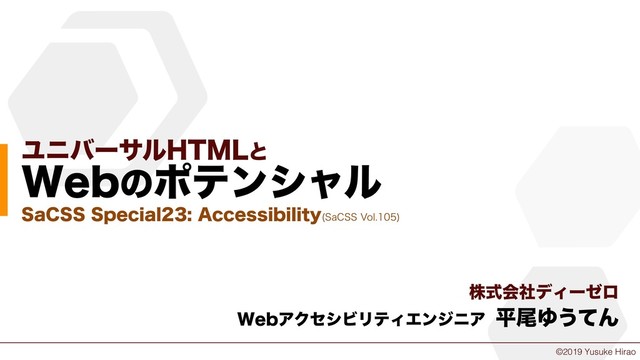 SaCSS Special23: Accessibility 多様化する環境やニーズに対して、WebサイトやWebアプリケーションはどのような開発をしたらいいのか。 ユニバーサル(普遍的)なHTMLを設計することで、様々な環境やデバイス・ユーザーの利用に耐えうるサイトやアプリケーションにすることができます。そのためには、Webがどんなポテンシャル(潜在的価値)を持っているのか知ることが鍵となります。 Webはまだまだ可能性が秘められているはずです。 それを皆さんと探っていきましょう。