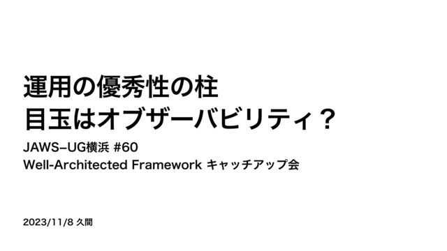 JAWS-UG横浜 #60 Well-Architected Framework キャッチアップ会で発表した資料です。