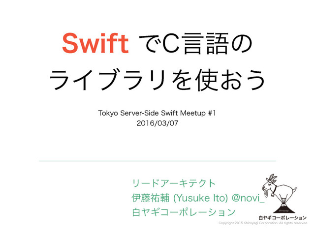 $PQZSJHIU4IJSPZBHJ$PSQPSBUJPO"MMSJHIUTSFTFSWFE 4XJGUͰ$ݴޠͷ ϥΠϒϥϦΛ͓͏ ϦʔυΞʔΩςΫτ ҏ౻༞ี :VTVLF*UP !OPWJ@ നϠΪίʔϙϨʔγϣϯ 5PLZP4FSWFS4JEF4XJGU.FFUVQ