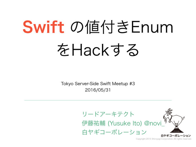 $PQZSJHIU4IJSPZBHJ$PSQPSBUJPO"MMSJHIUTSFTFSWFE 4XJGUͷ͖&OVN Λ)BDL͢Δ ϦʔυΞʔΩςΫτ ҏ౻༞ี :VTVLF*UP !OPWJ@ നϠΪίʔϙϨʔγϣϯ 5PLZP4FSWFS4JEF4XJGU.FFUVQ