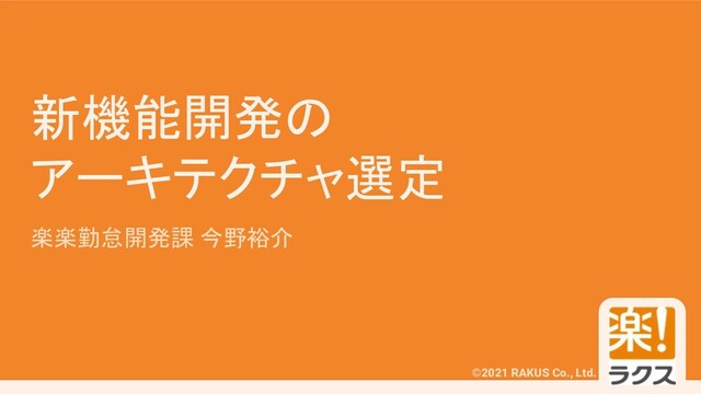 #RAKUSMeetup ©2021 RAKUS Co., Ltd. 新機能開発の アーキテクチャ選定 楽楽勤怠開発課 今野裕介