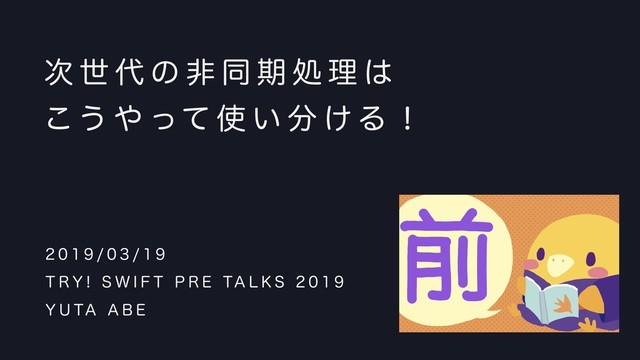 Swiftを使っているみなさんなら非同期処理というとGCDやRxSwift、そしてSwift5で実現されるかもしれないasync/awaitを想像するかと思います。 async/awaitが現実に近づいてきた今どの方法で非同期処理を実装するべきか、Rxのstreamが欲しいケース、Promiseが欲しいケース、私の考えるそれぞれの使用シーンを説明します。