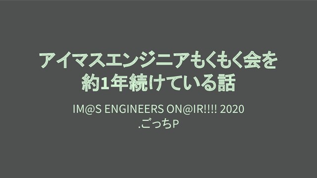 アイマスエンジニアもくもく会を 約1年続けている話 IM@S ENGINEERS ON@IR!!!! 2020 .ごっちP