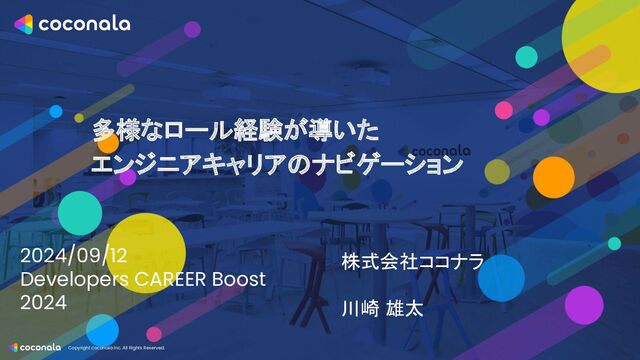 Copyright coconala Inc. All Rights Reserved. 多様なロール経験が導いた エンジニアキャリアのナビゲーション 株式会社ココナラ 川崎
