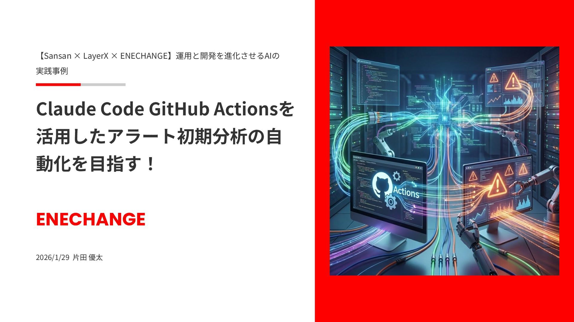 活⽤したアラート初期分析の⾃ 動化を⽬指す! ENECHANGE 2026/1/29 ⽚⽥ 優太