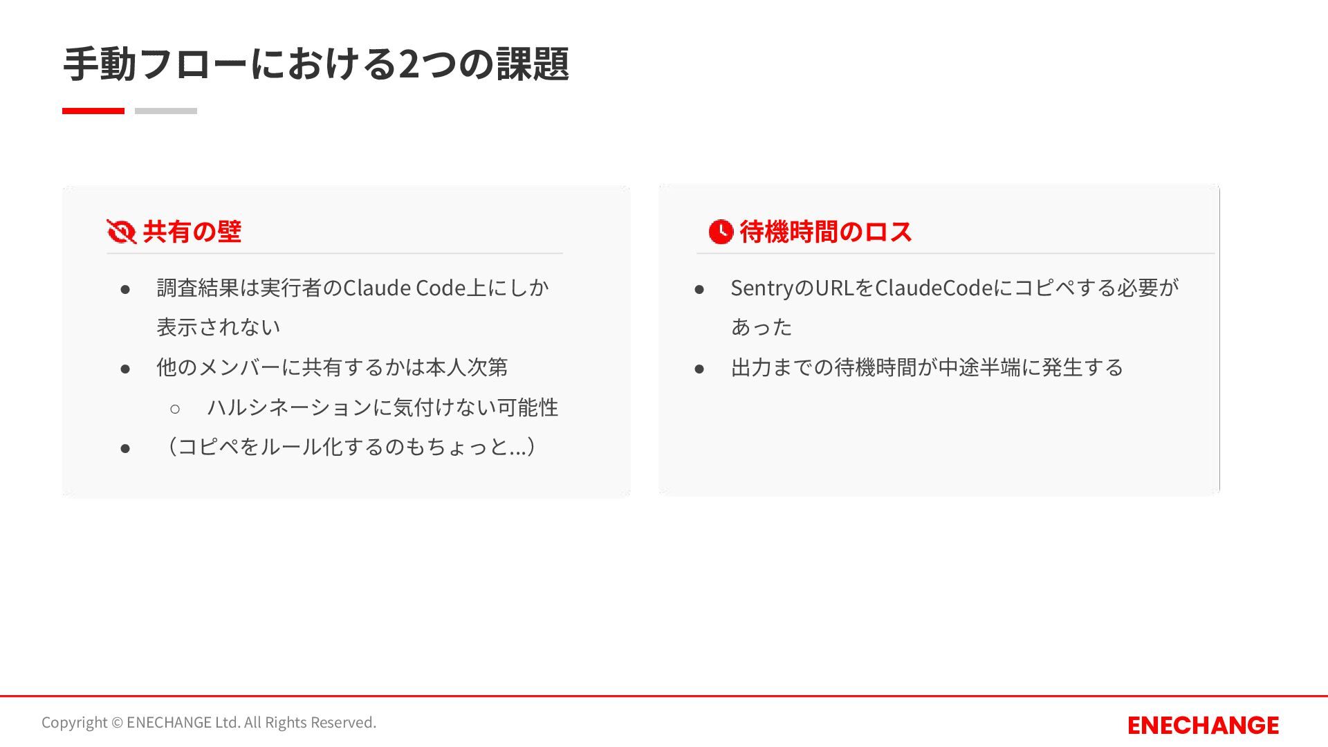 ⼿動フローにおける2つの課題 Copyright © ENECHANGE Ltd. All Rights Reserved. ENECHANGE 共有の壁