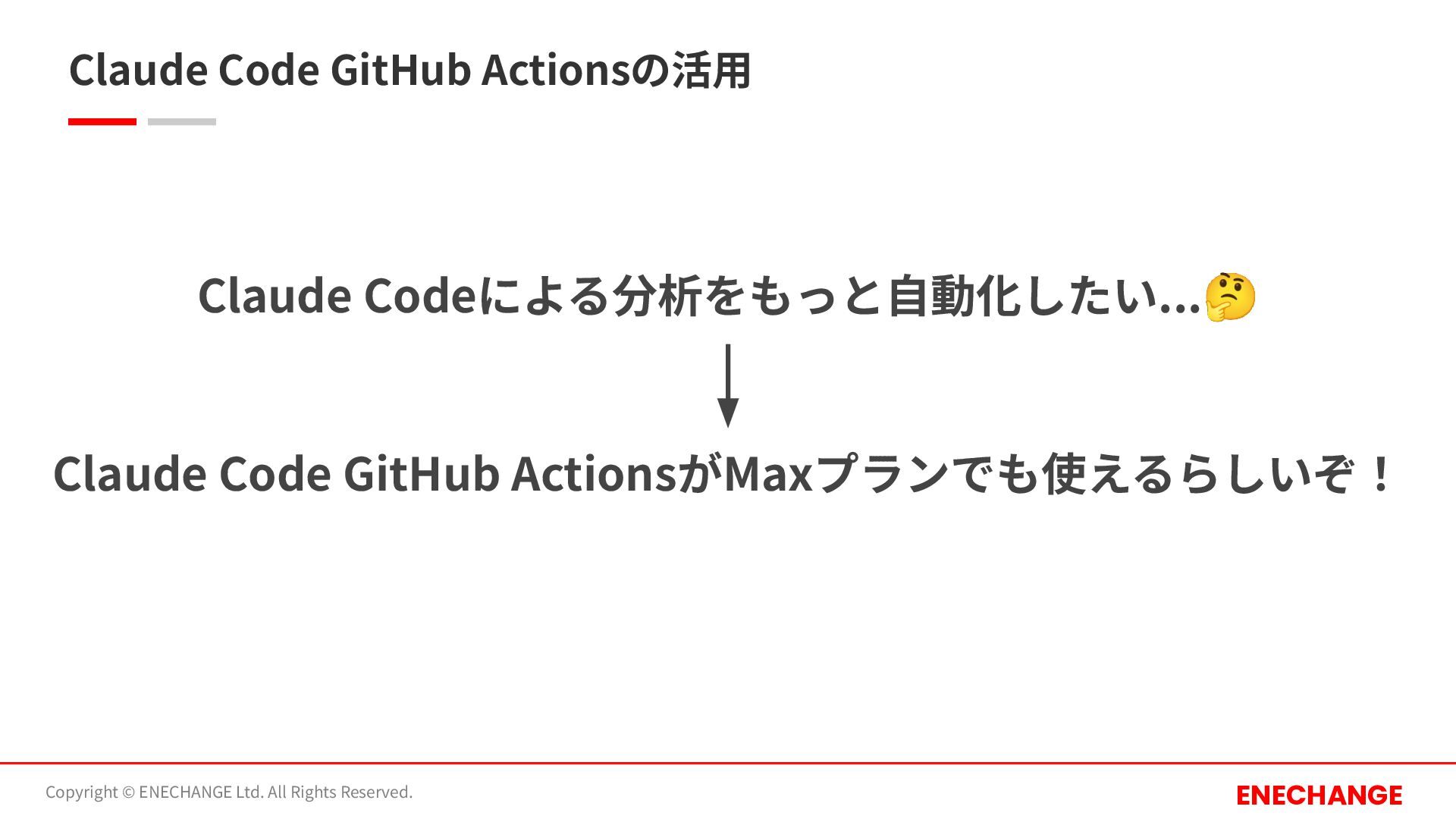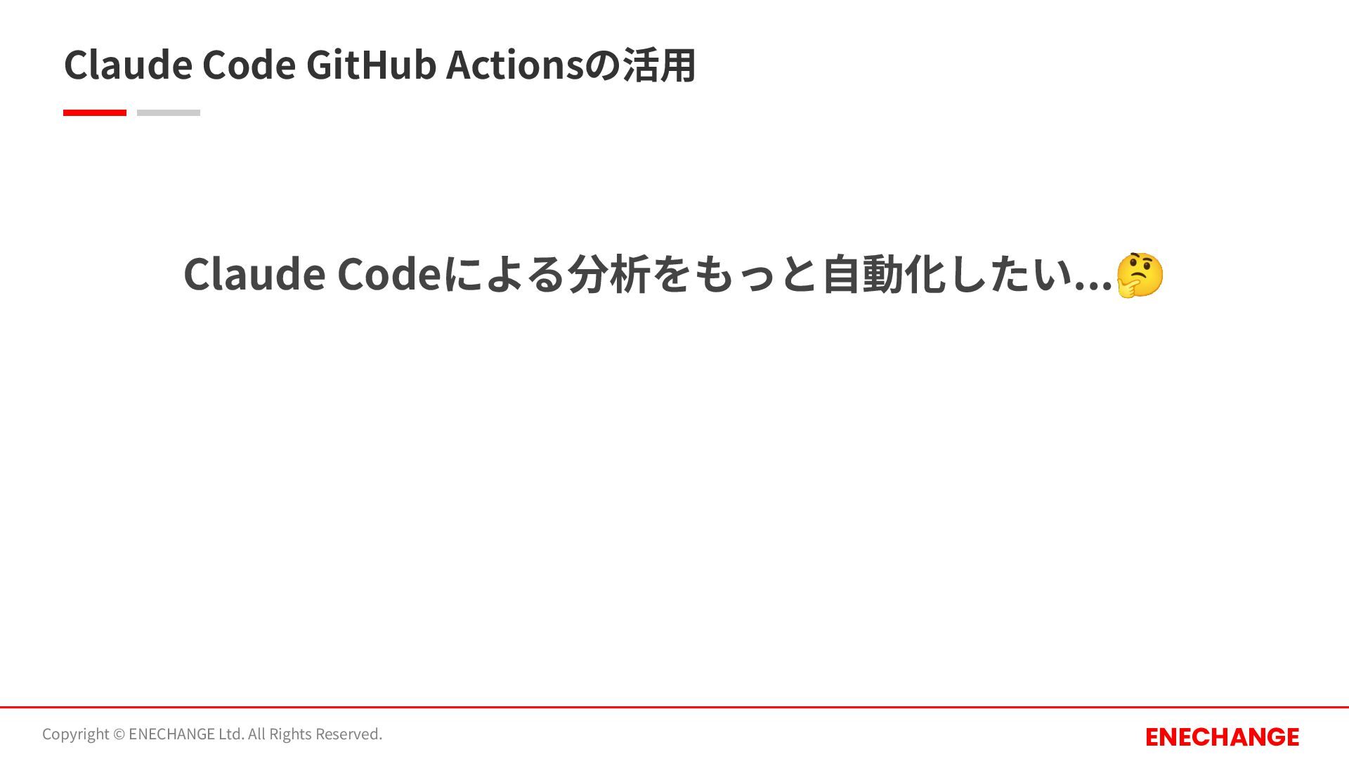 Claude Codeによる分析をもっと⾃動化したい...🤔 Claude Code GitHub Actionsの活⽤ Copyright © ENECHANGE Ltd.