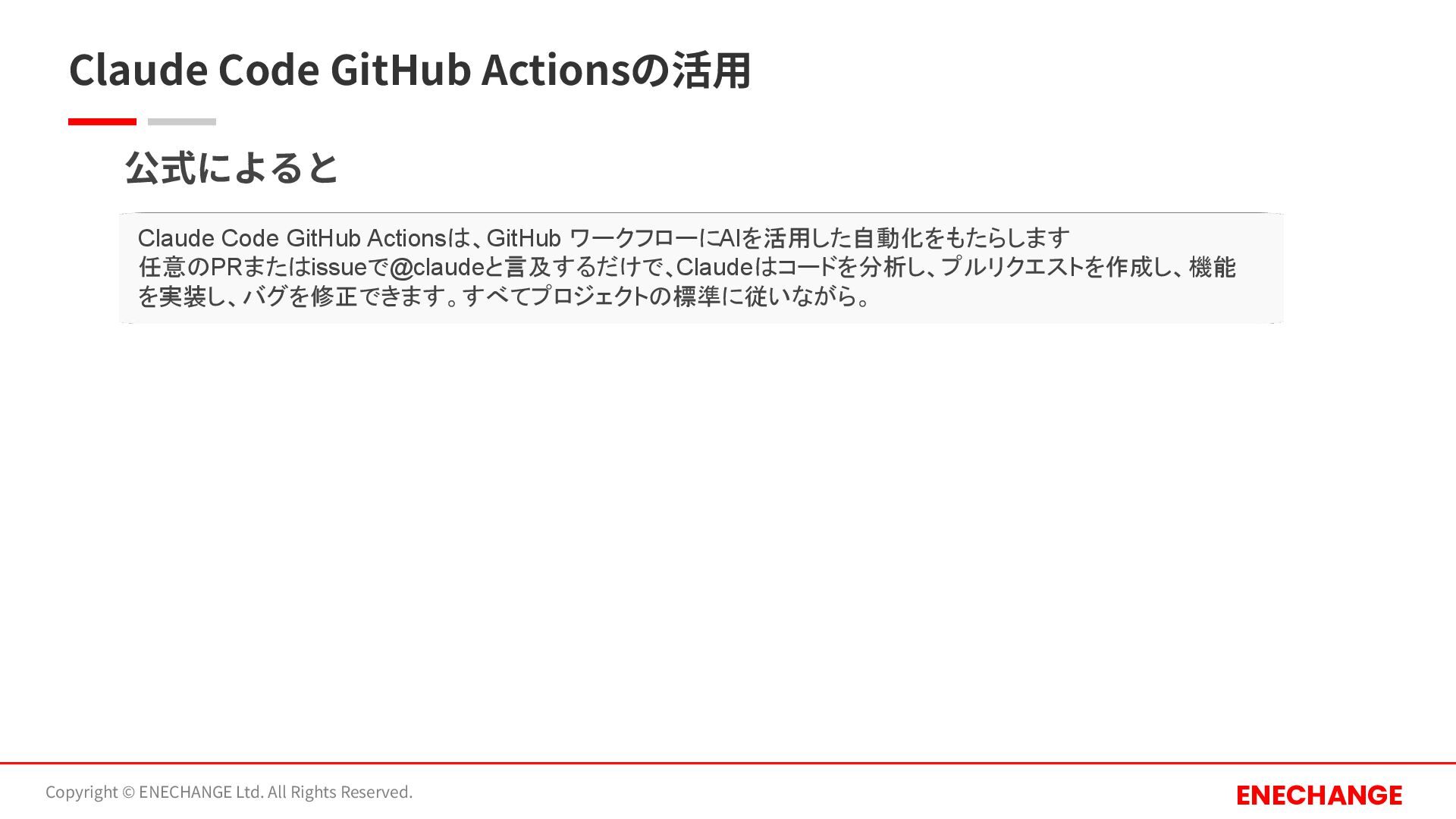 Claude Code GitHub Actionsの活⽤ Copyright © ENECHANGE Ltd. All Rights