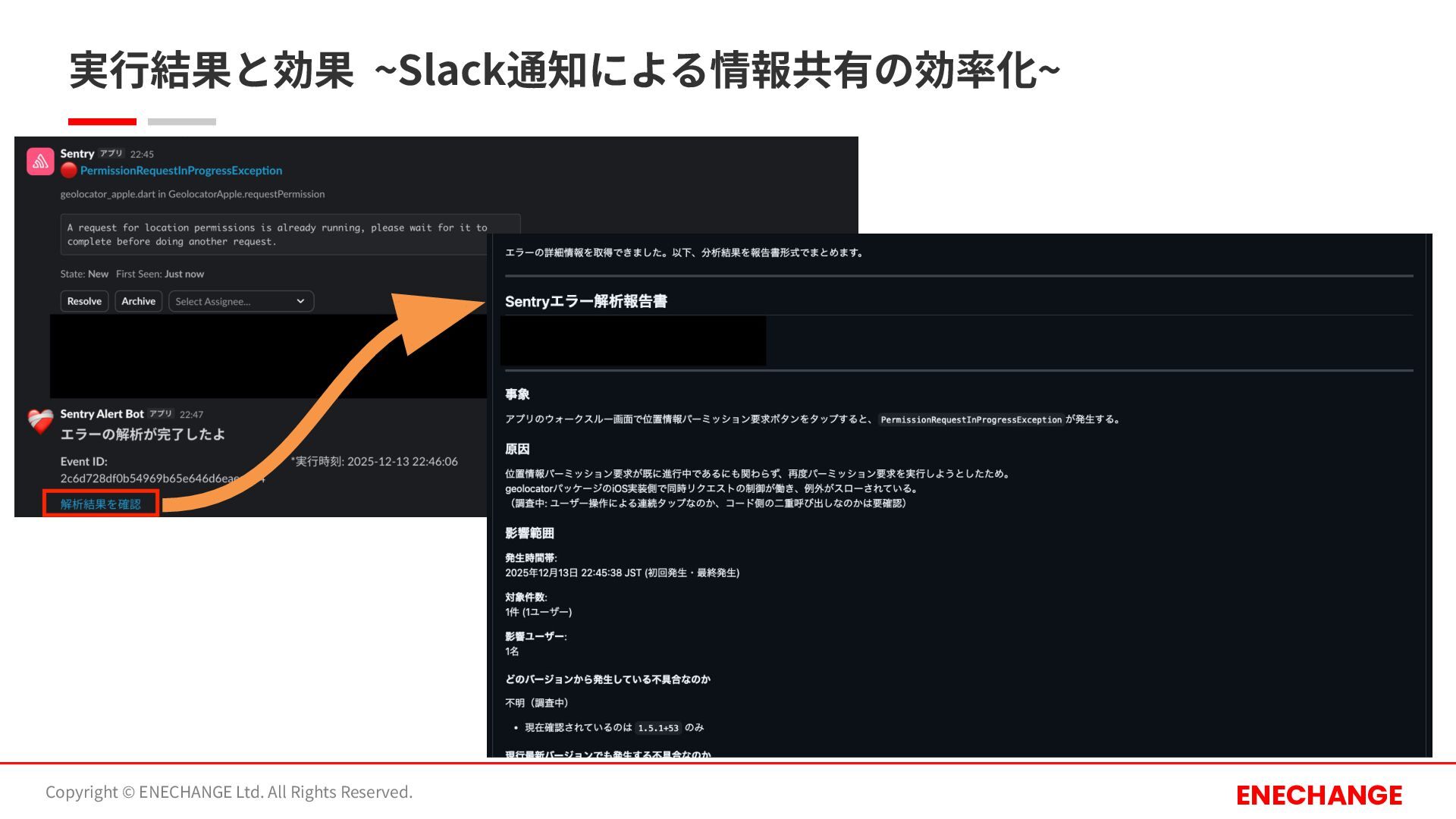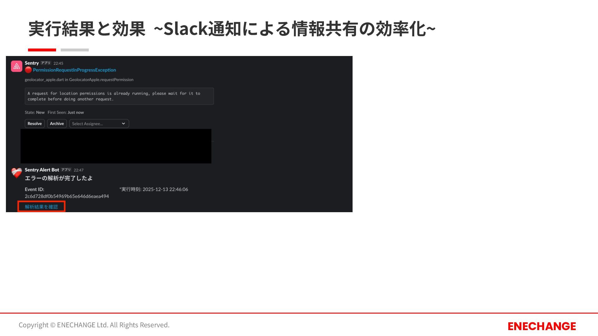 実⾏結果と効果 ~Slack通知による情報共有の効率化~ Copyright © ENECHANGE Ltd. All Rights Reserved. ENECHANGE