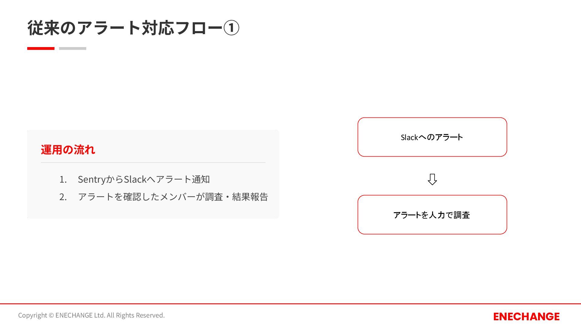 従来のアラート対応フロー① Copyright © ENECHANGE Ltd. All Rights Reserved. ENECHANGE 運⽤の流れ