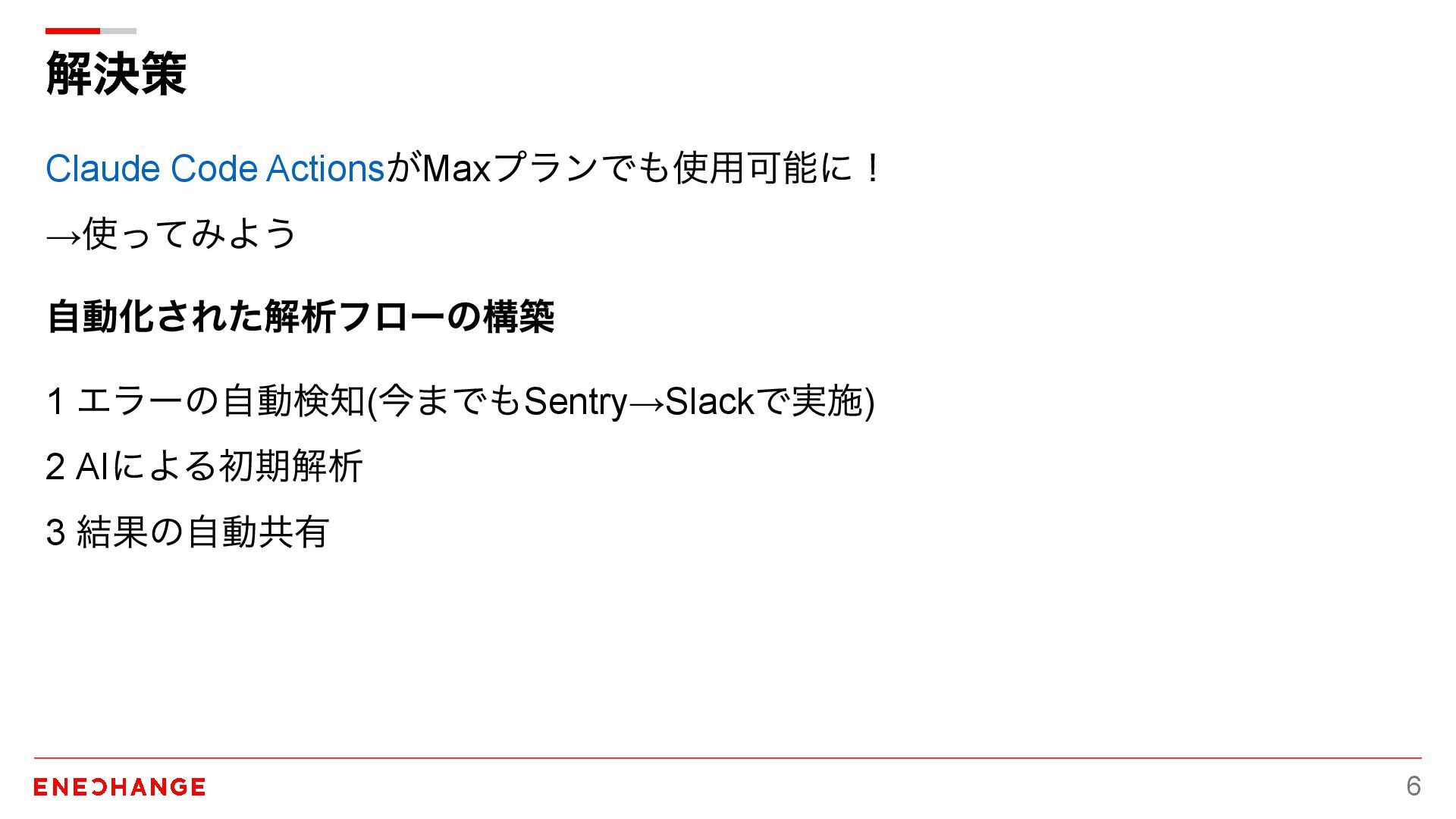 今までもSentry→Slack で実施) 2 AI による初期解析 3 結果の自動共有 解決策 6