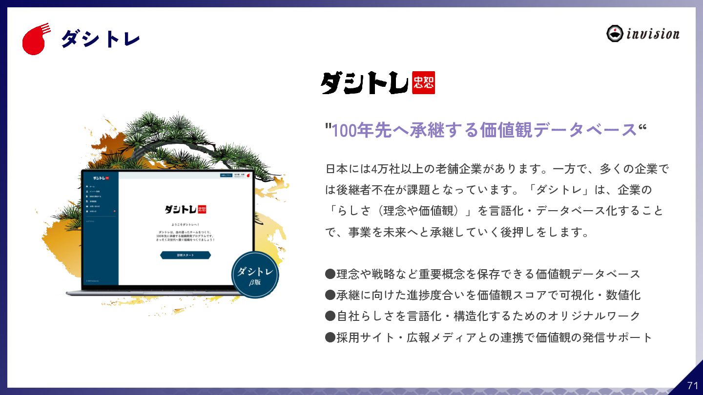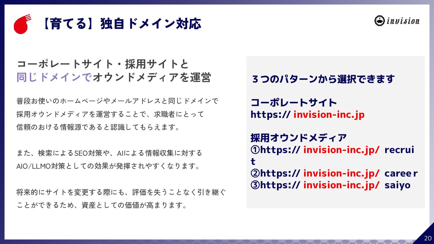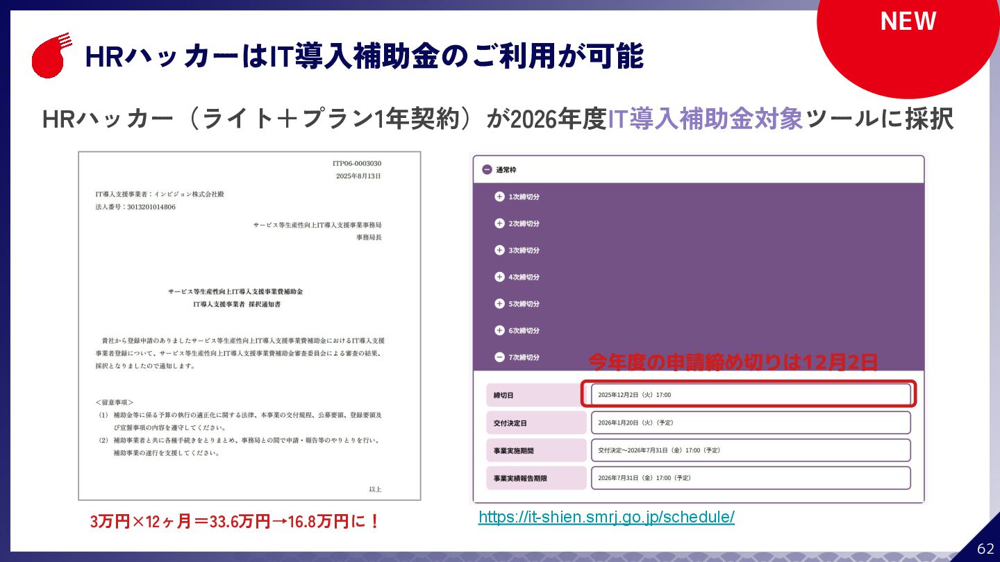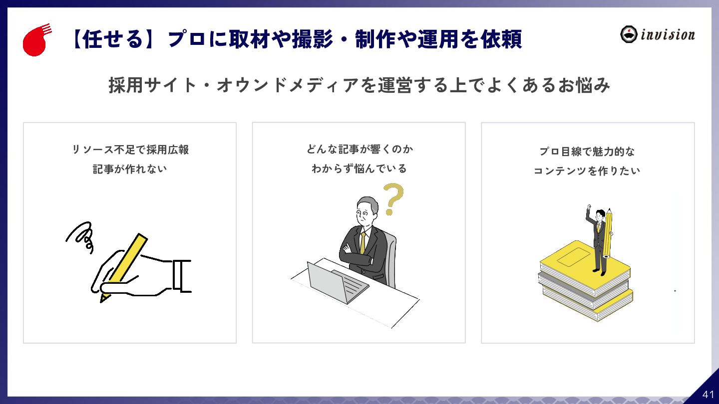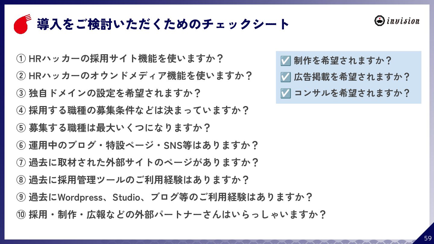 ¥60,000 /月 (税抜) スタンダードプラン ¥100,000 /月 (税抜) 採用オウンドメディア作成 ✔ AIコンテンツ制作サポート ✔ 動画/スライド埋め込み ✔ 独自ドメイン対応 ✔ ダシトレ連携(β版) ✔ 同時公開求人数:9件 ご契約期間:6ヶ月~ 同時公開求人数:100件 ご契約期間:6ヶ月~ 同時公開求人数:無制限 ご契約期間:6ヶ月~ Indeed PLUS対応 ✔ 8つの求人メディア連携 ✔ ダシマス/新聞社メディア連携 ✔ Googleタグマネージャー連携 ✔ トラッキングタグ機能 ✔ オリジナルレポート ✔ メッセージチャット ✔ 応募者・候補者行動分析 ✔ 求人/応募CSV入出力 ✔ Googleカレンダー連携 ✔ ※『月額料金とは別に「保守費・管理費」を頂戴するケースがございま す』