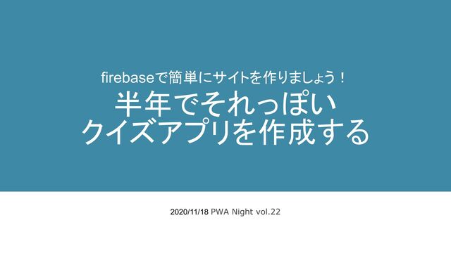 2020/11/18 PWA Night vol.22 firebaseで簡単にサイトを作りましょう! 半年でそれっぽい クイズアプリを作成する