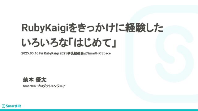 柴本 優太 SmartHR プロダクトエンジニア RubyKaigiをきっかけに経験した いろいろな「はじめて」 2025.05.16 Fri RubyKaigi 2025事後勉強会