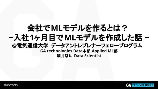 Applied ML部 酒井悠斗 Data Scientist 2025/09/13