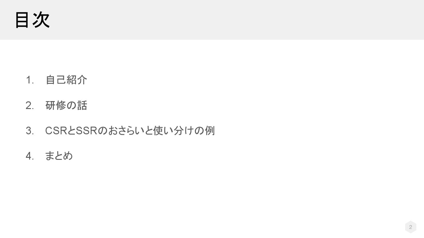 目次 2 1. 自己紹介 2. 研修の話 3. CSRとSSRのおさらいと使い分けの例 4. まとめ
