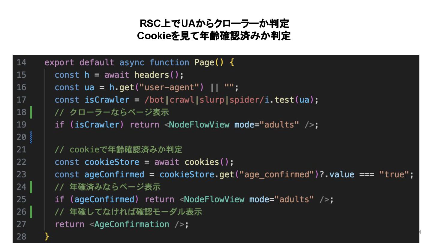 24 RSC上でUAからクローラーか判定 Cookieを見て年齢確認済みか判定