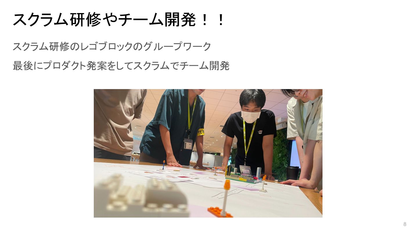 8 スクラム研修のレゴブロックのグループワーク 最後にプロダクト発案をしてスクラムでチーム開発 スクラム研修やチーム開発!!