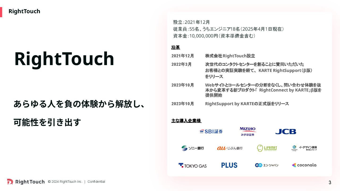 をリリース 2023年10月 Webサイトとコールセンターの分断をなくし、問い合わせ体験を抜 本から変革する新プロダクト「 RightConnect by KARTE」β版を 提供開始