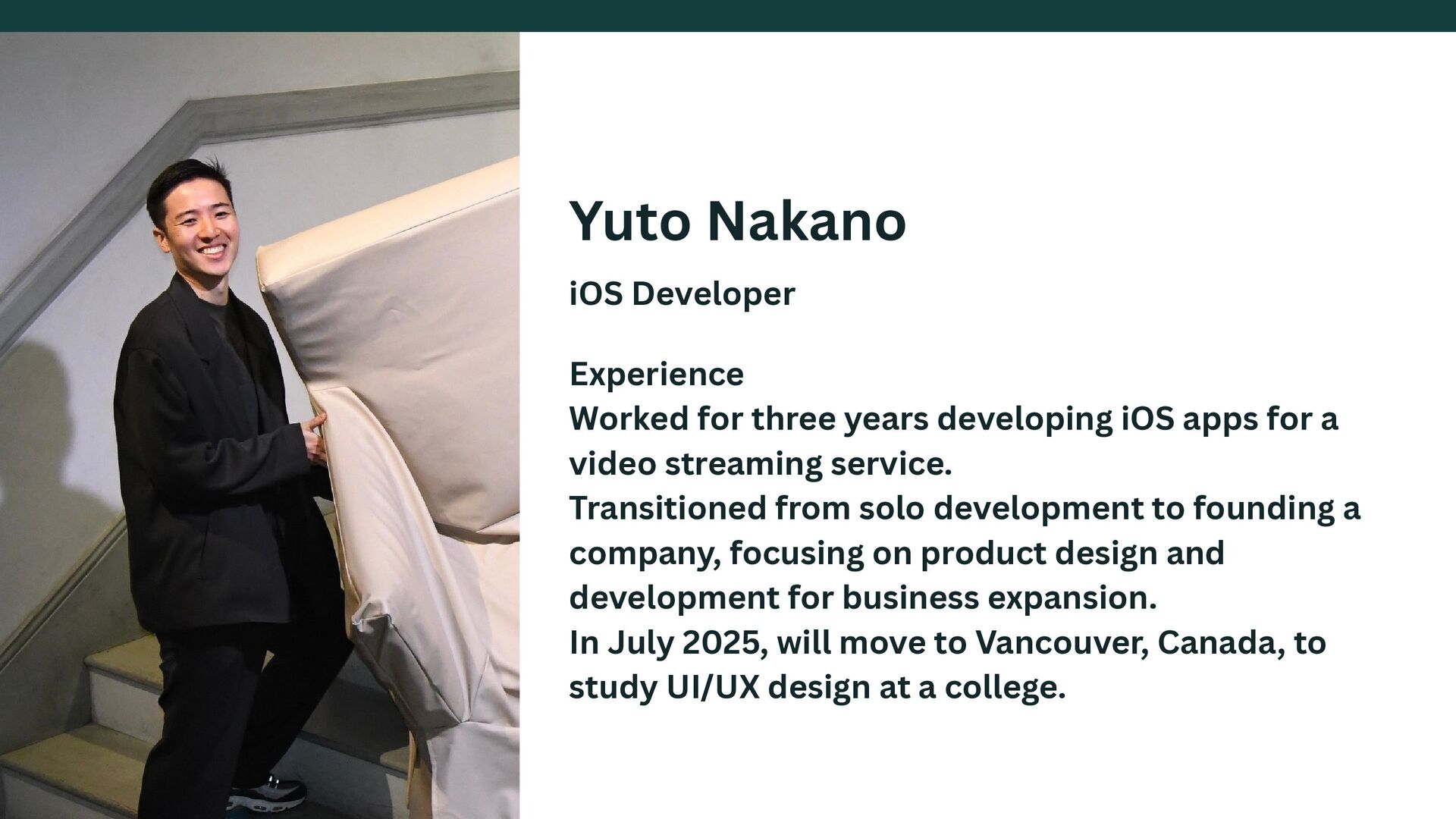 2. Yuto Nakano iOS Developer Experience Worked for three years developing