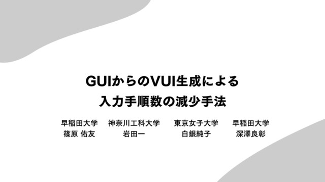 GUIからのVUI⽣成による ⼊⼒⼿順数の減少⼿法 早稲⽥⼤学 篠原 佑友 神奈川⼯科⼤学 岩⽥⼀ 東京⼥⼦⼤学 ⽩銀純⼦ 早稲⽥⼤学