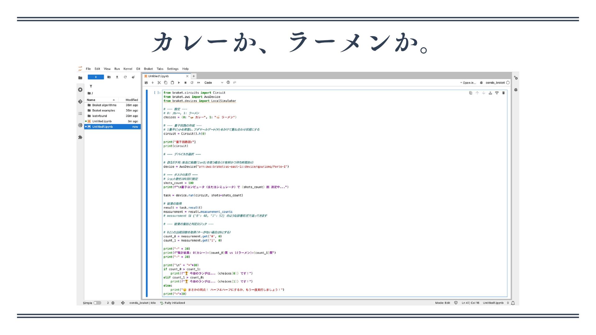 量 子 力 学 シュレディンガーのカレー Schrödinger's Curry 今日のランチを量子で決定する