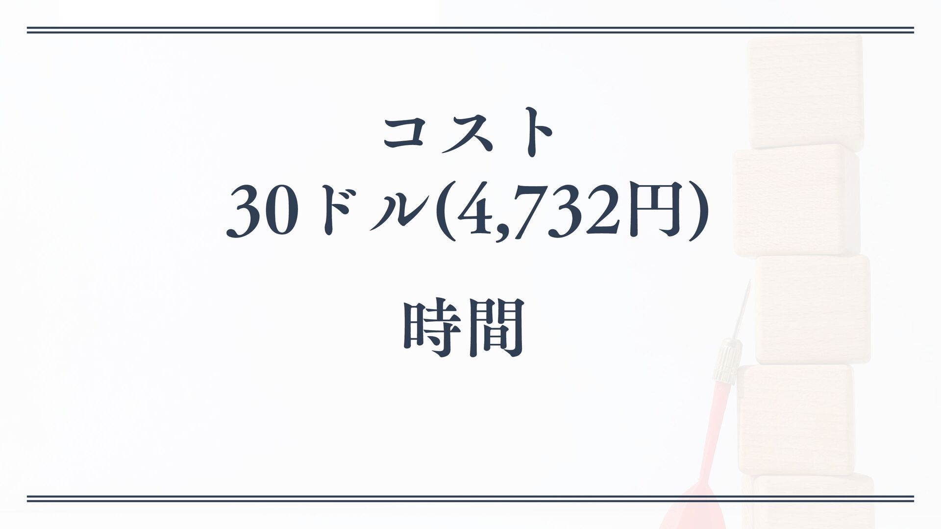 コスト 30ドル(4,732円) 時間