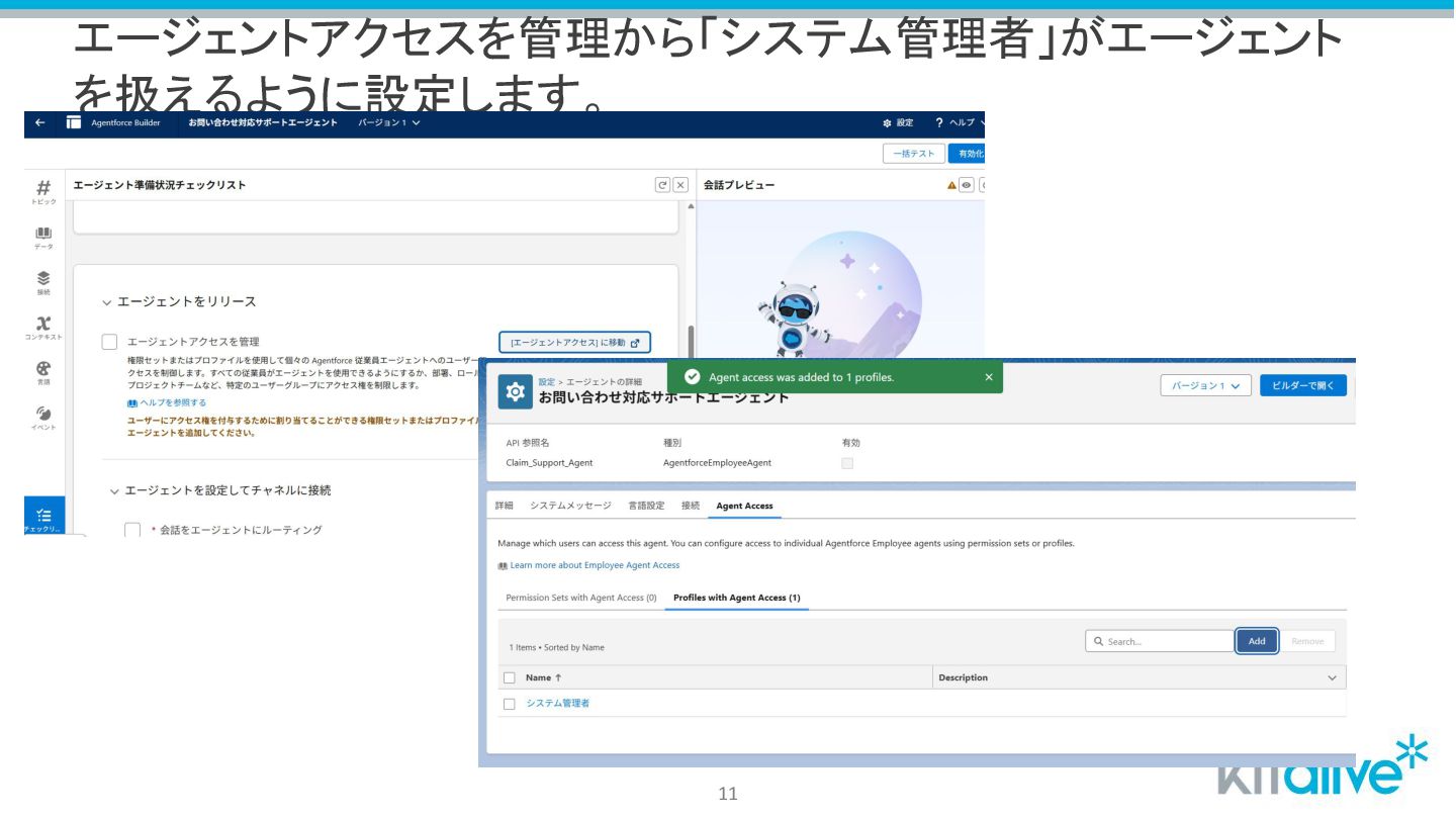 エージェントアクセスを管理から「システム管理者」がエージェント を扱えるように設定します。 11