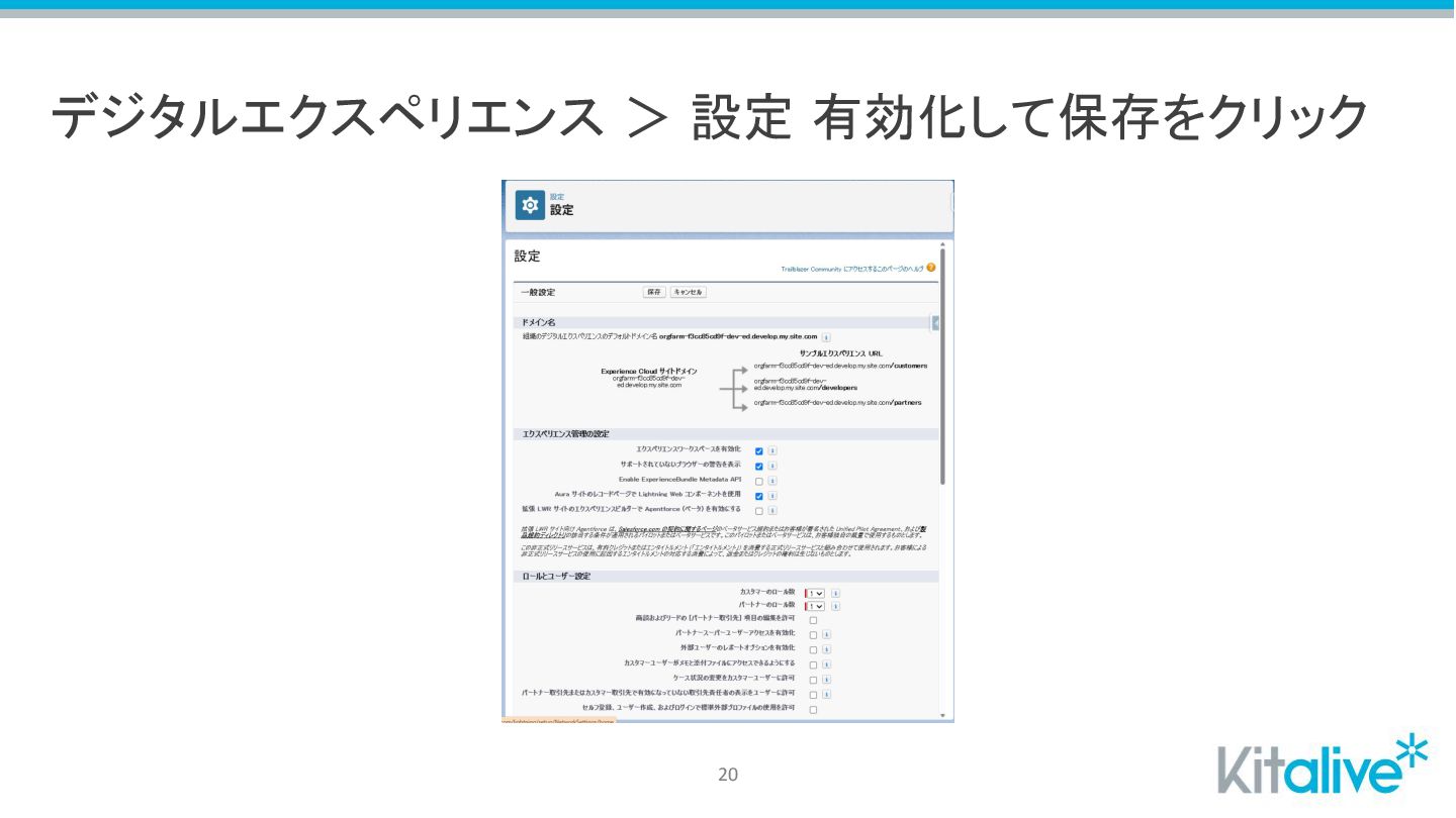 デジタルエクスペリエンス > 設定 有効化して保存をクリック 20