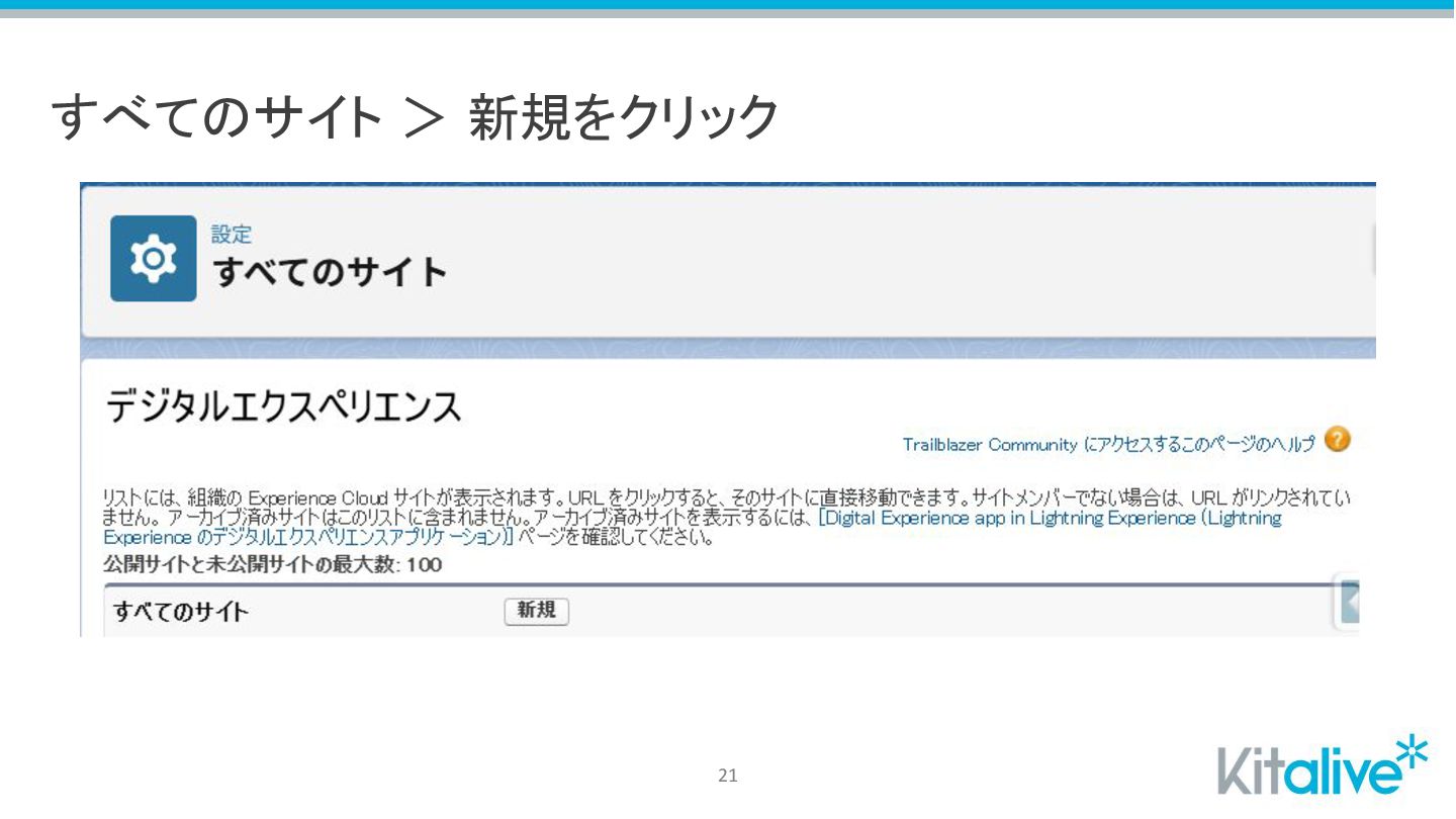 すべてのサイト > 新規をクリック 21
