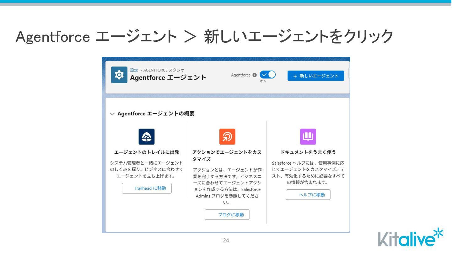Agentforce エージェント > 新しいエージェントをクリック 24