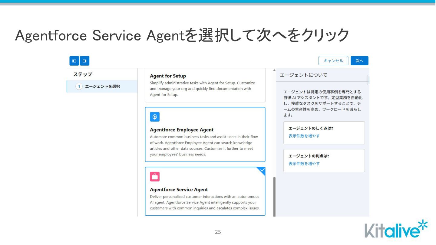 Agentforce Service Agentを選択して次へをクリック 25