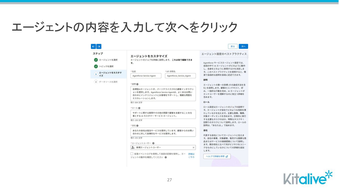 エージェントの内容を入力して次へをクリック 27