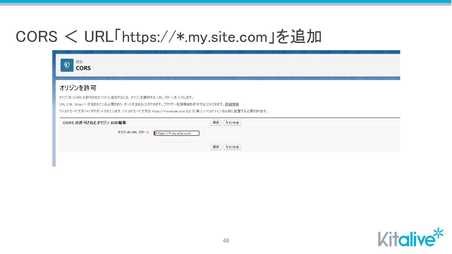 CORS < URL「https://*.my.site.com」を追加 48