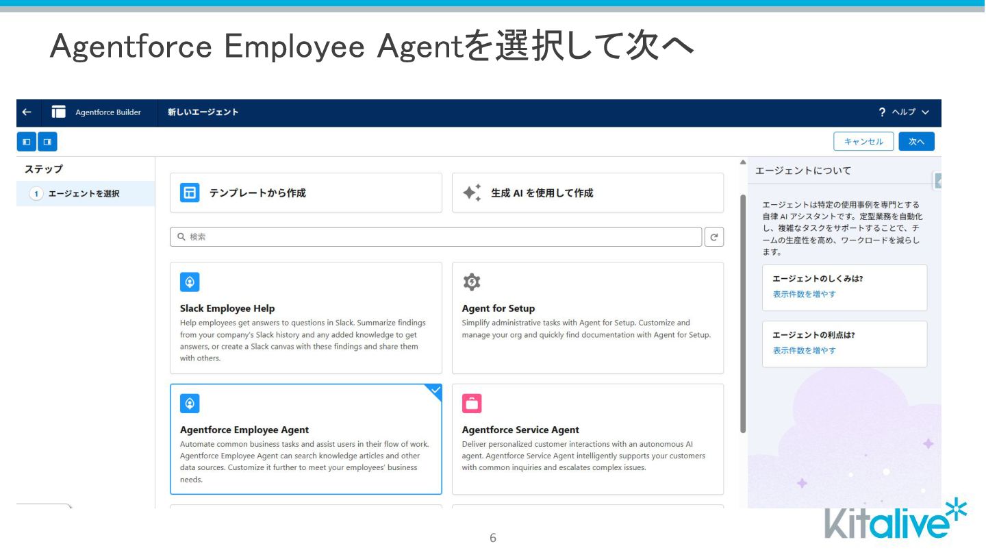 Agentforce Employee Agentを選択して次へ 6