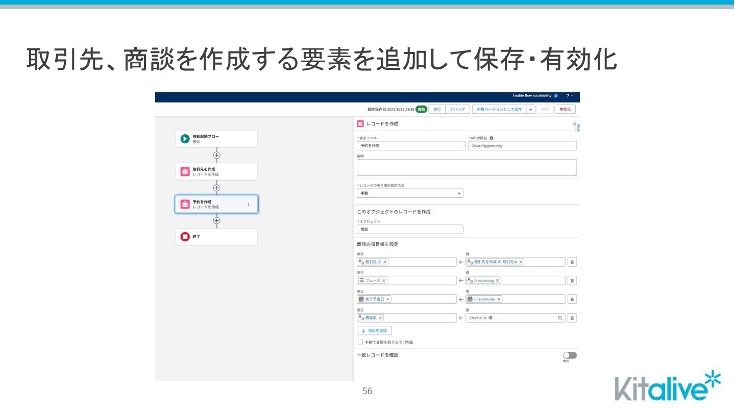取引先、商談を作成する要素を追加して保存・有効化 56