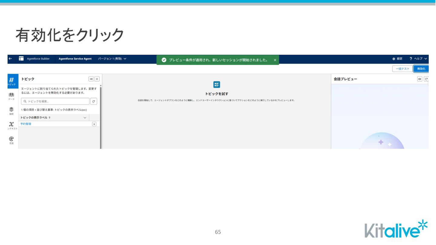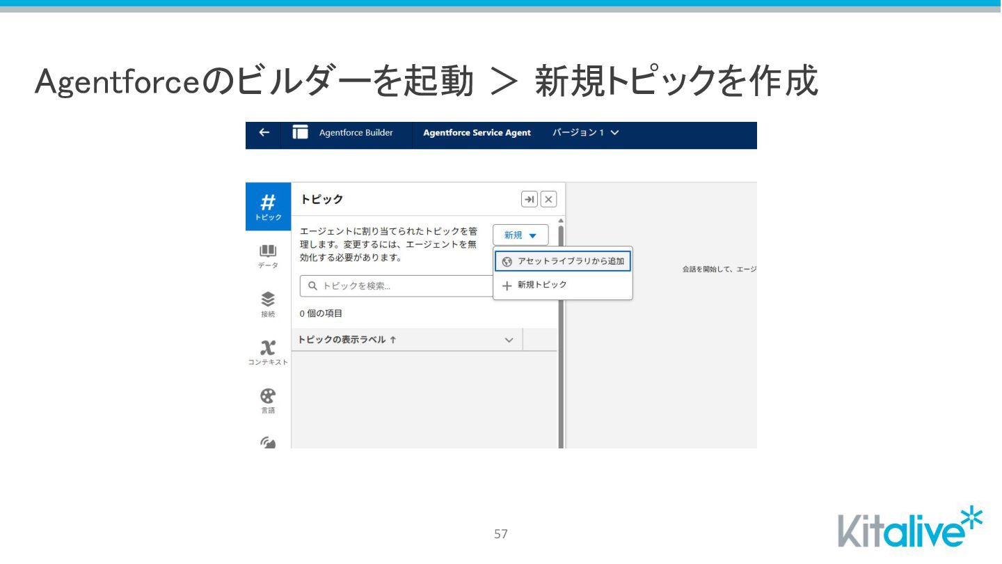 Agentforceのビルダーを起動 > 新規トピックを作成 57