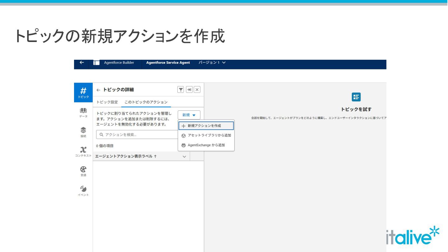 トピックの新規アクションを作成 60