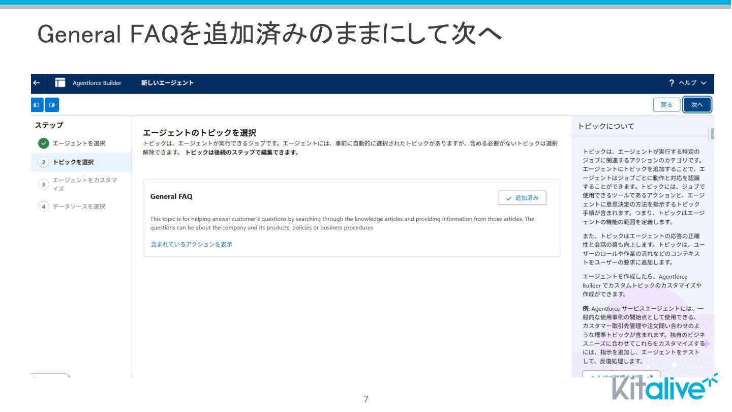 General FAQを追加済みのままにして次へ 7