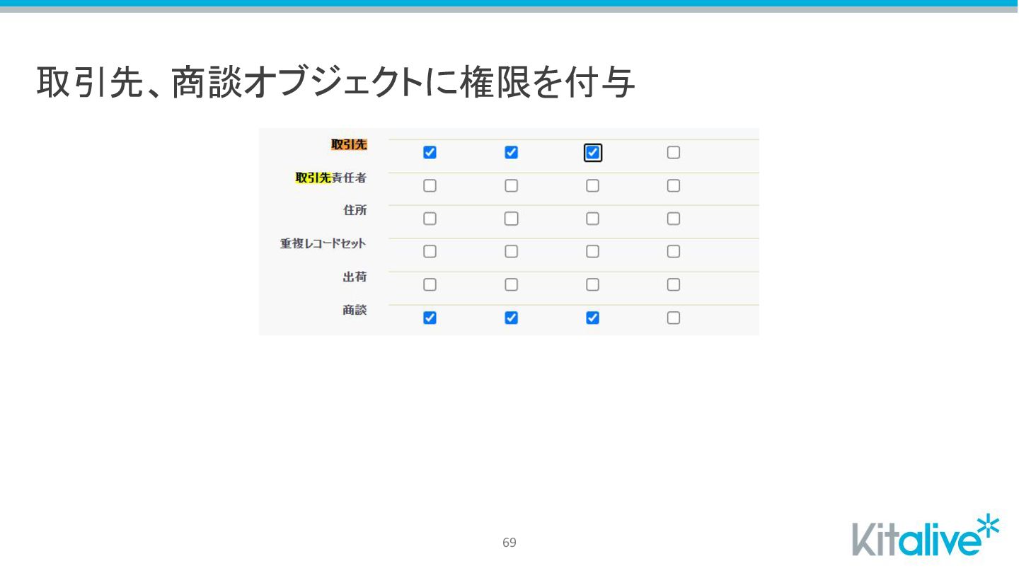 取引先、商談オブジェクトに権限を付与 69