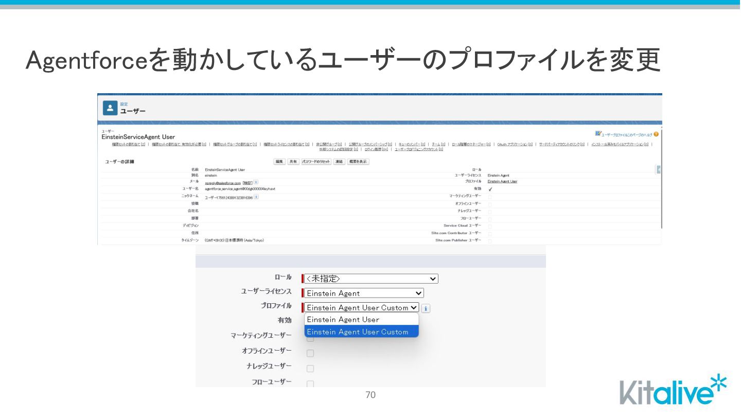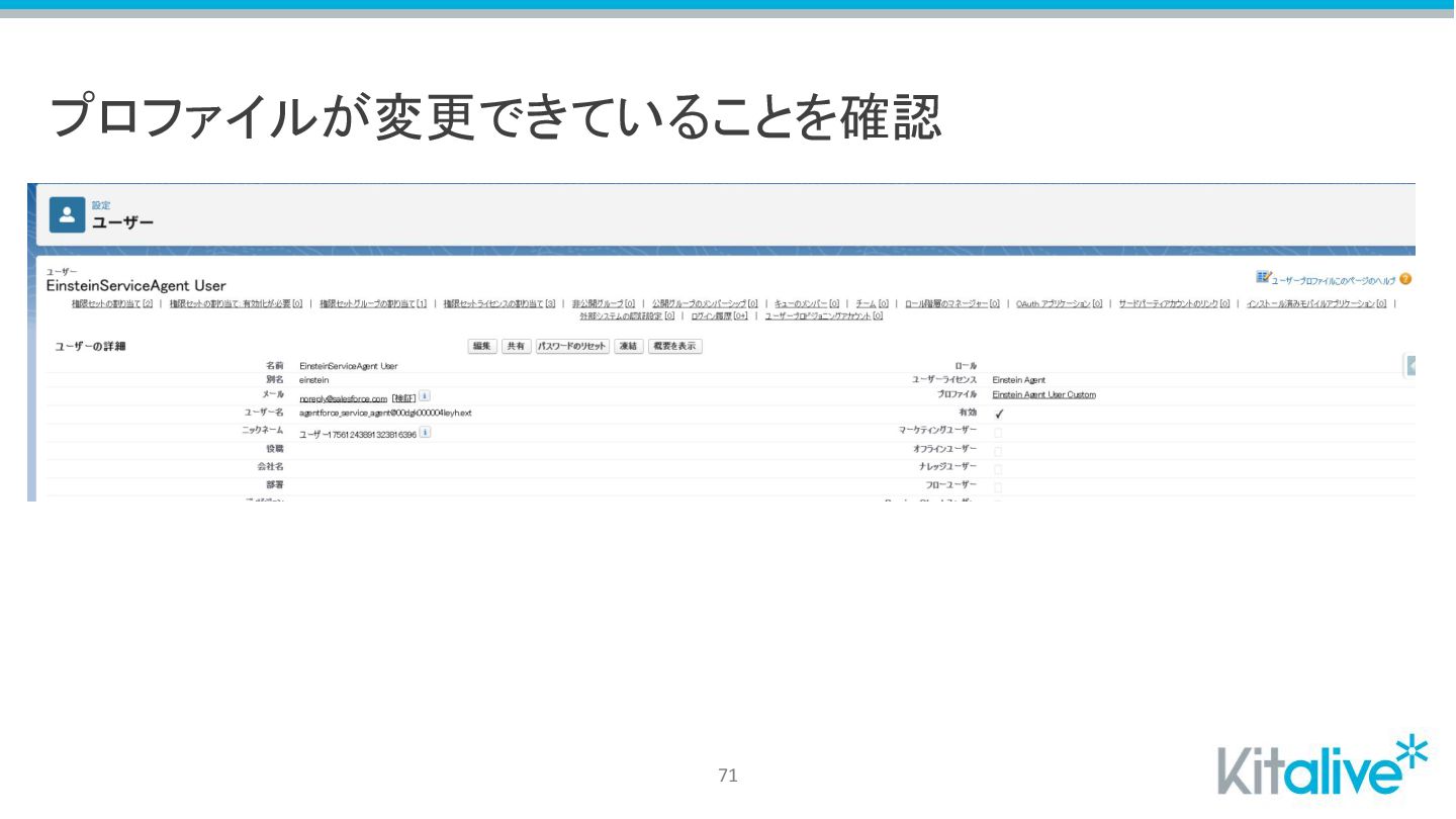 Agentforceを動かしているユーザーのプロファイルを変更 70