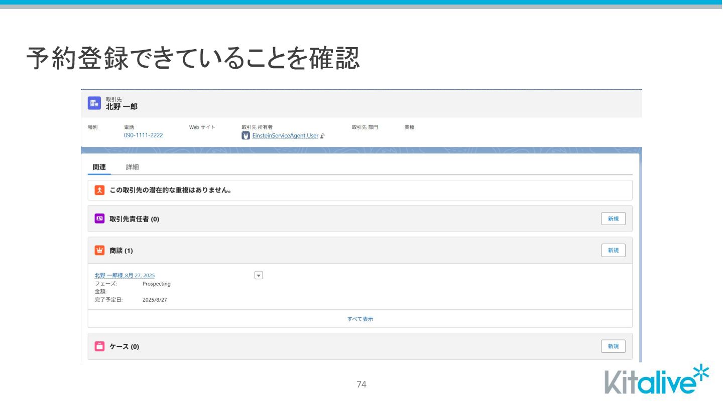予約登録できていることを確認 74