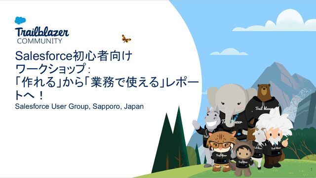 Salesforce初心者向け ワークショップ: 「作れる」から「業務で使える」レポー トへ! Salesforce User Group, Sapporo, Japan 1