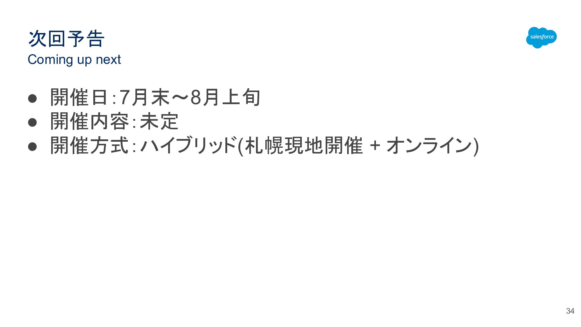 Coming up next 次回予告 • 開催日:7月末~8月上旬 • 開催内容:未定 • 開催方式:ハイブリッド(札幌現地開催