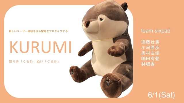 怒りを「くるむ」ぬい「ぐるみ」 team-sixpad 遠藤壮馬 小河原歩 奥村友佳 嶋田有登 林穂香 6/1(Sat) KURUMI 新しいユーザー体験を作る家電をプロタイプする