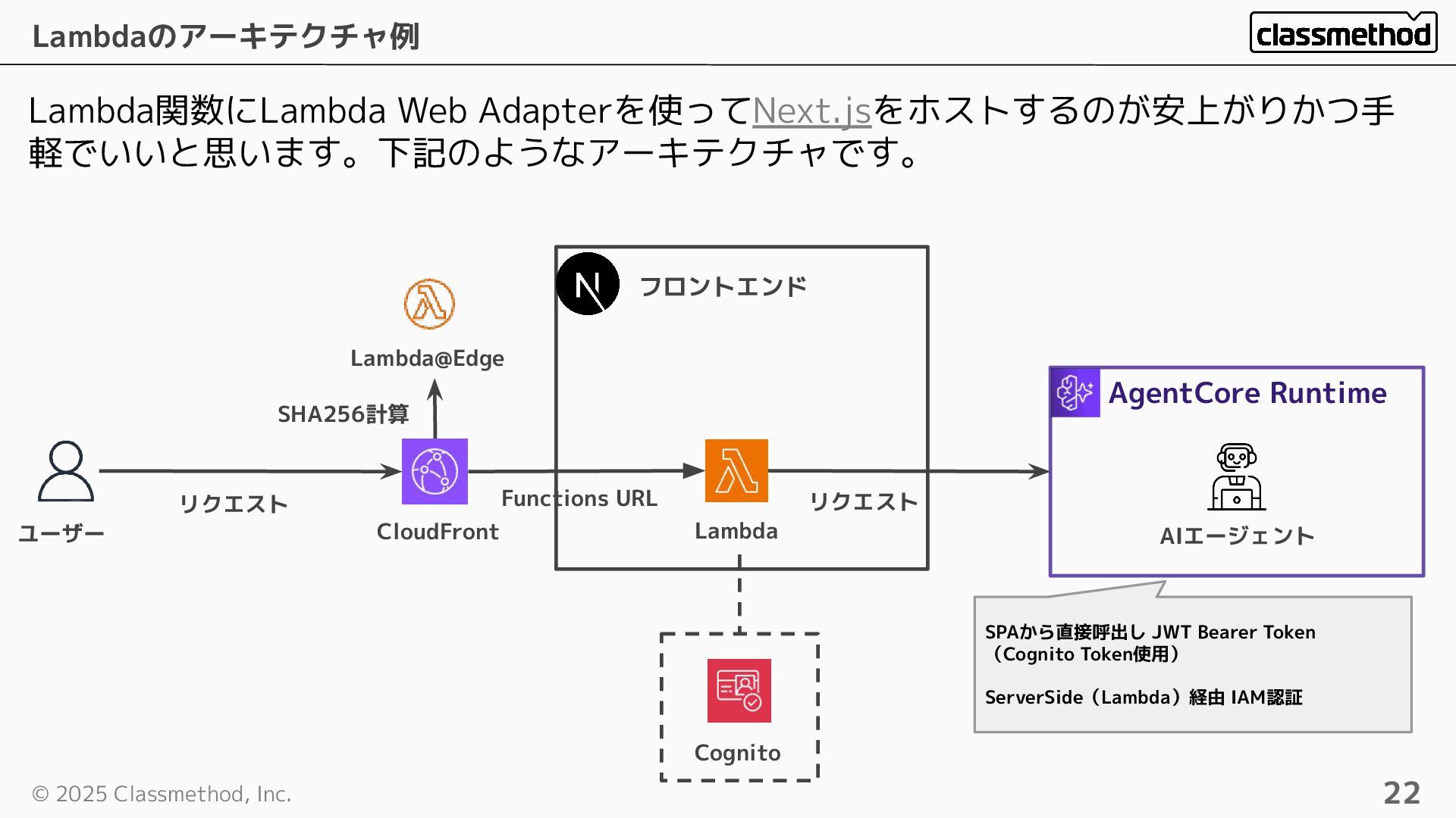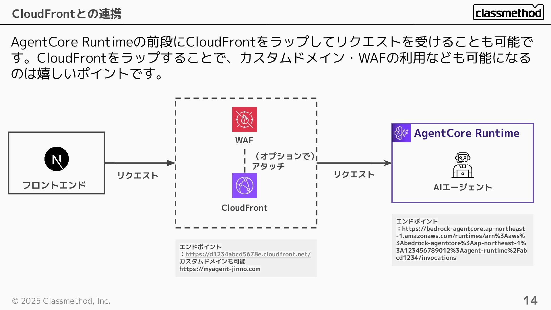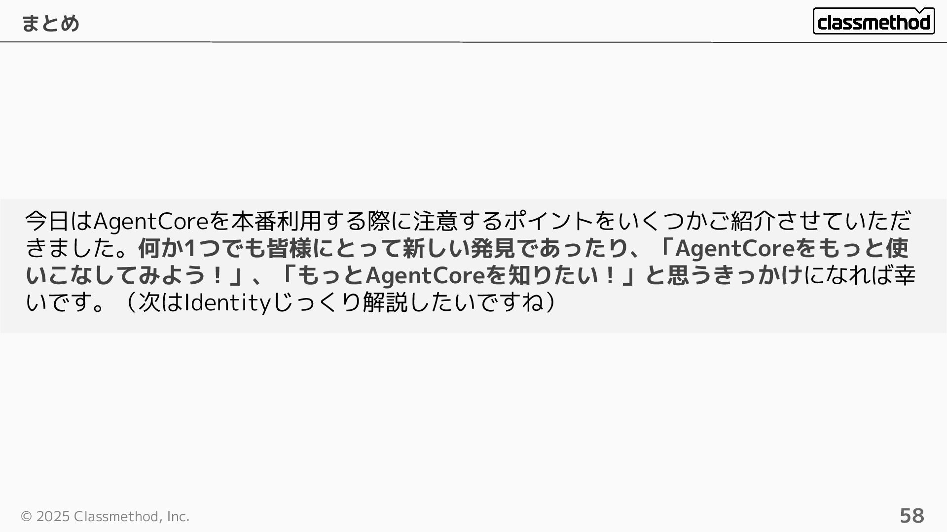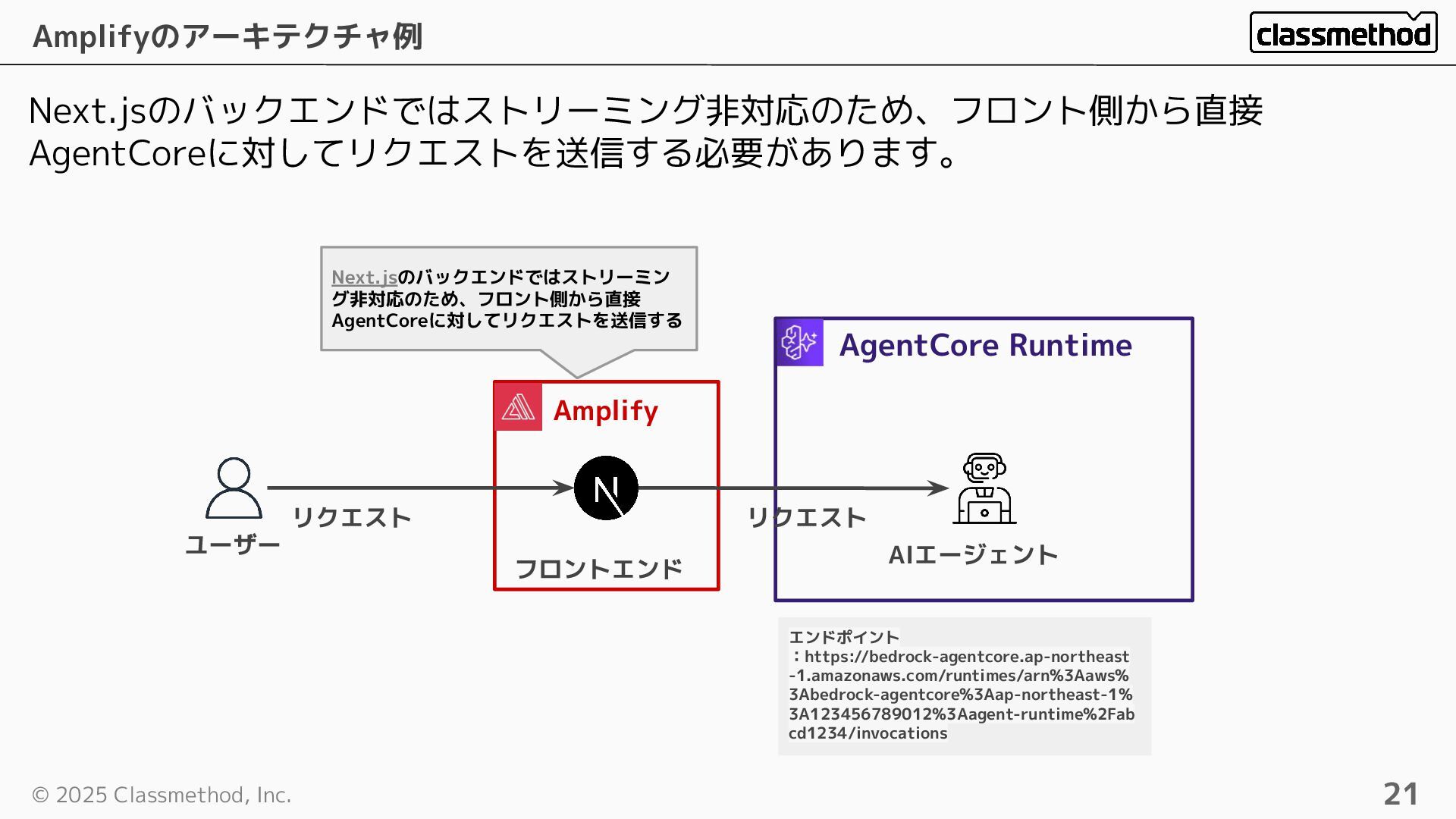 Bedrock AgentCore ユーザーA Strands Agents AIエージェント Memory ユーザーB ユーザーAの記憶 actor_id = abc123-456-789 Cognito アクセス トークン リクエスト with アクセストークン & IDトークン JWTをデコードして ユーザー情報を取得 デコードしたユーザー情報に 応じたユーザー情報を参照 sub: "abc123-456-789" email: "