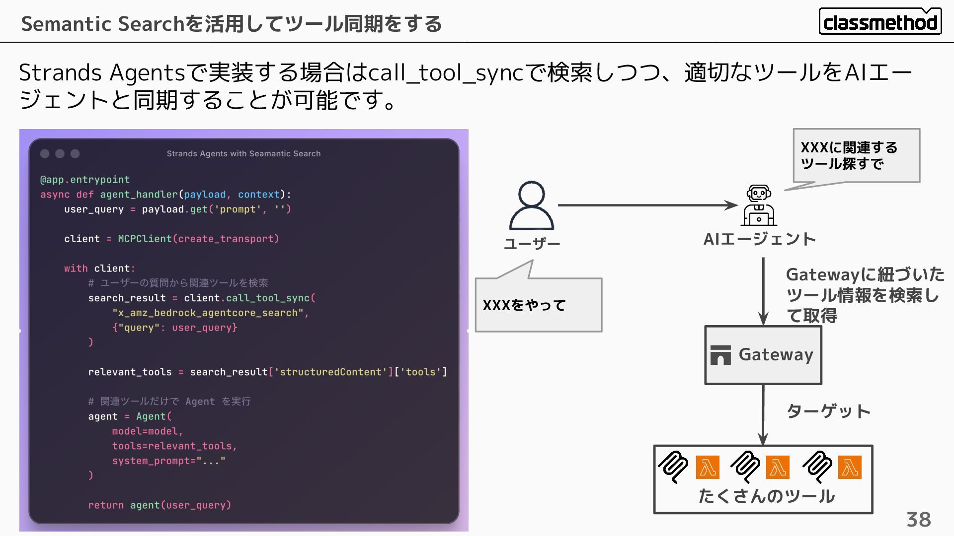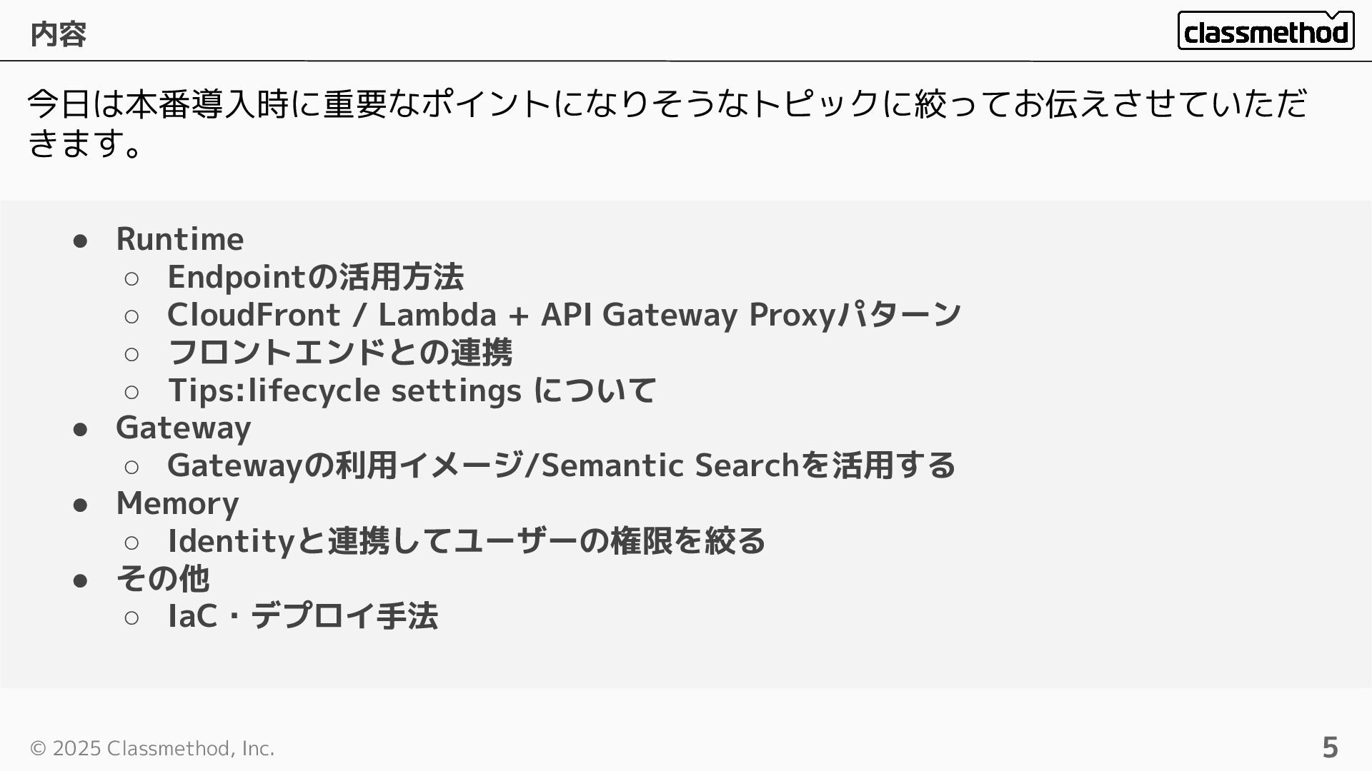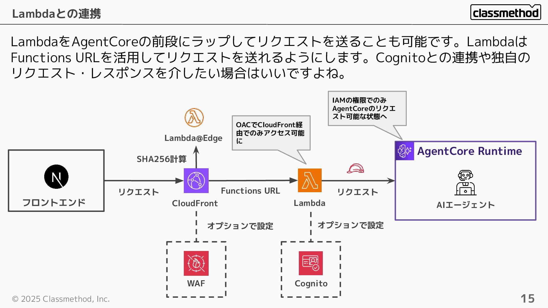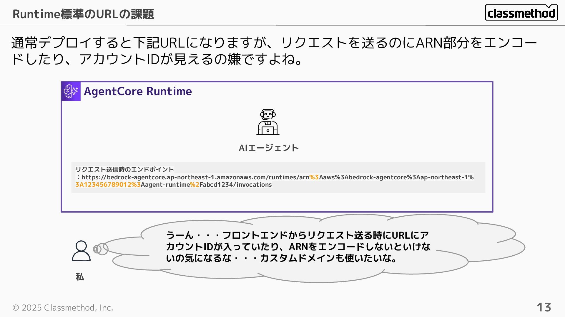 Bedrock AgentCore ユーザーA Strands Agents AIエージェント Memory ユーザーB ユーザーAの記憶 actor_id = abc123-456-789 Cognito アクセス トークン リクエスト with アクセストークン & IDトークン JWTをデコードして ユーザー情報を取得 デコードしたユーザー情報に 応じたユーザー情報を参照 sub: "abc123-456-789" email: "