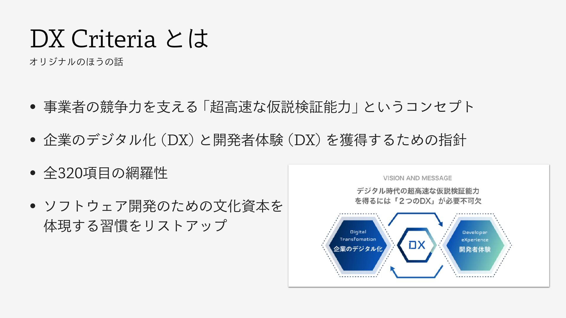 %9$SJUFSJBͱ ΦϦδφϧͷ΄͏ͷ w ࣄۀऀͷڝ૪ྗΛࢧ͑ΔňߴͳԾઆݕূೳྗʼnͱ͍͏ίϯηϓτ w اۀͷσδλϧԽ %9 ͱ։ൃऀମݧ %9 Λ֫ಘ͢ΔͨΊͷࢦ